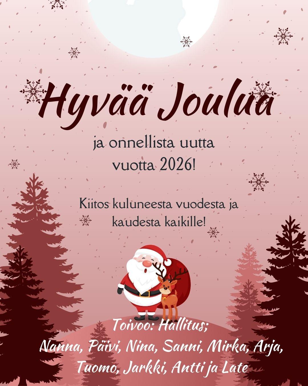 Tervetuloa kasaamaan yhdessä kauden risut ja ruusut ja antamaan kehitysideoita ensi kaudelle! Kahvitarjoilu! Kahvittajille talkootunteja tarjolla. Tervetuloa!